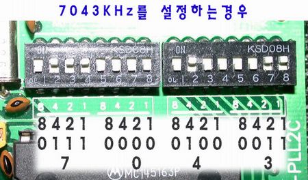 Á֯ļö ¼³Á¤¹æ¹ý Á֯ļö ¼³Á¤Àº °¡Àå ½±°Ô ±¸ÀÔÇÒ ¼ö ÀÖ´Â DIP½ºÀ§Ä¡¸¦ »ç¿ëÇÏ¿´´Ù. ÀÌ DIP½ºÀ§Ä¡·Î 4ÀÚ¸®ÀÇ Á֯ļö¸¦ ¼³Á¤Çϴµ¥ 2Áø¼ö¸¦ »ç¿ëÇÑ´Ù. §ÖÀÚ¸® 7À» ¼³Á¤ÇÏ·Á¸é 0111(8421), Áï ½ºÀ§Ä¡¸¦ OFF. ON, ON, ON ÇÏ¸é µÈ´Ù. ¶Ç 10§Õ´ÜÀ§ 5¸¦ ¼³Á¤ÇÑ´Ù¸é 10§Õ´ÜÀ§½ºÀ§Ä¡ 4°³¸¦ 0101 OFF, ON, OFF, ONÀ¸·Î ÇÏ¸ç ½ºÀ§Ä¡¸¦ À§·Î ¿Ã¸®´Â °ÍÀÌ ONÀÌ µÈ´Ù. 8421 > 0111 > 0+4+2+1=7, 8421 > 0000> 0+0+0+0=0, 8421 > 0100 > 0+4+0+0=4, 8421 > 0011 > 0+0+2+1=3